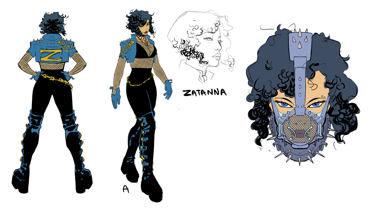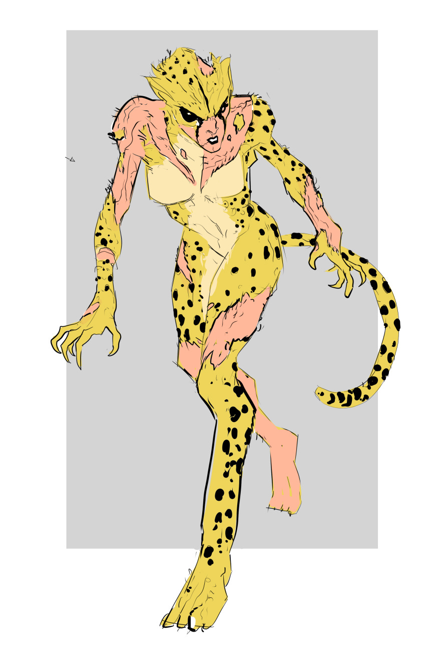 CHEETAH. This is obviously not Barbara, but her identity will be revealed in issue 17. Obviously, people have a lot of feelings and ideas about Cheetah and there’s not much I can say for fear of spoilers, except that if you feel this design feels “unfinished:…. it is, and that’s by design: