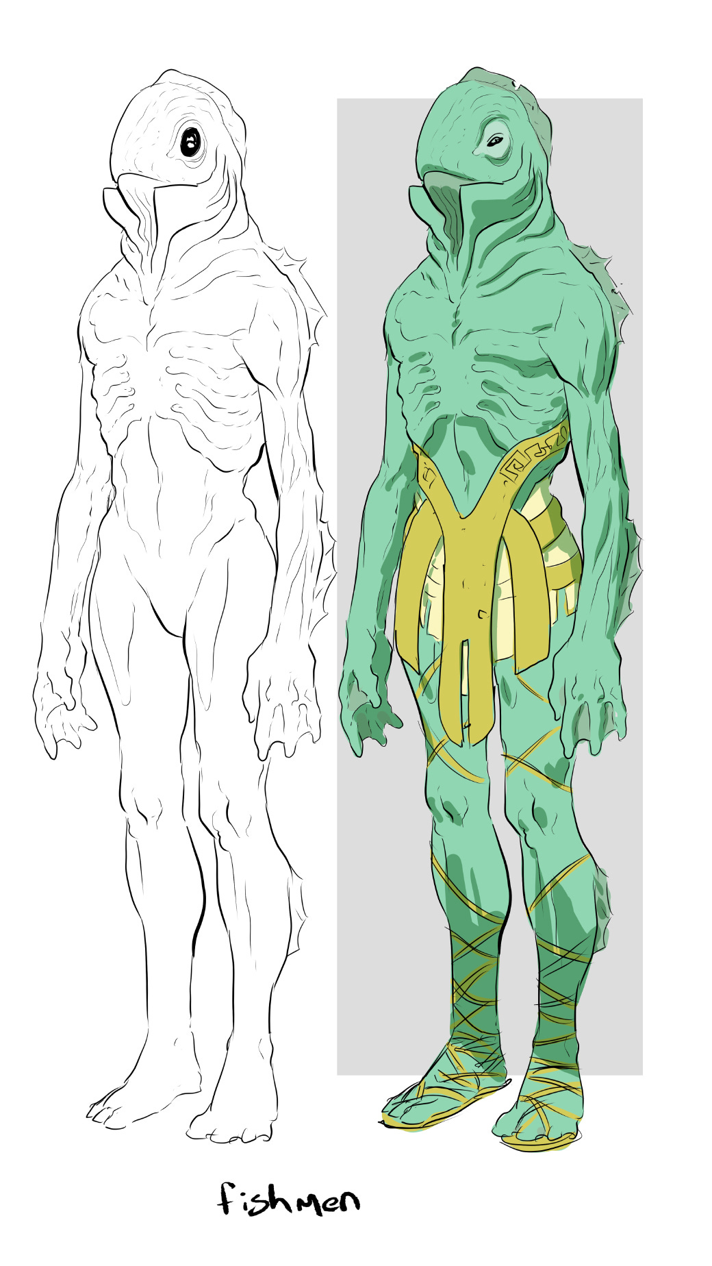 MEN-FISH: And in case you didn’t see them in the previous post, this is Hayden’s Men-Fish design from the Maze arc — and you can see the ways Hayden tied these two designs together, while still letting Ara feel significantly different and like her own character.