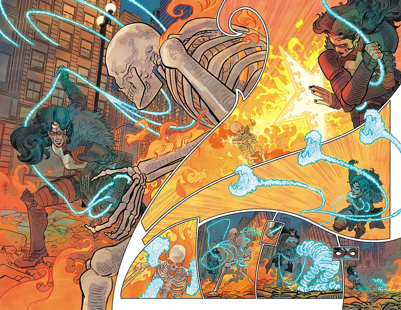 I don’t usually share something this big, but there’s so much cool crap in ABSOLUTE WONDER WOMAN #19 (out at the end of the month!) that I’m just going for it and showing off this fantastic unlettered DPS which is also your first look at The Troika in action: