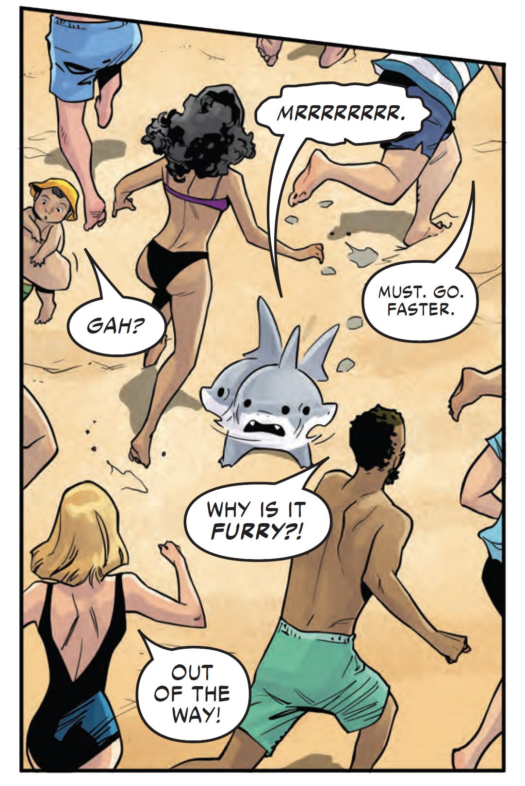 As we discussed at the top of this newsletter, a special DC/Marvel crossover story pairing up Jeff and Aquaman came out this week — it’s digital only right now on MARVEL UNLIMITED but will be in print eventually. Here are a few very fun panels from the story, courtesy of Andres Genolet (who you may know from his excellent RUNAWAYS work) and also Jim Campbell who colored our JEFF THE LAND SHARK mini-series last year: