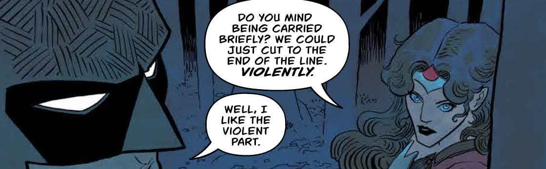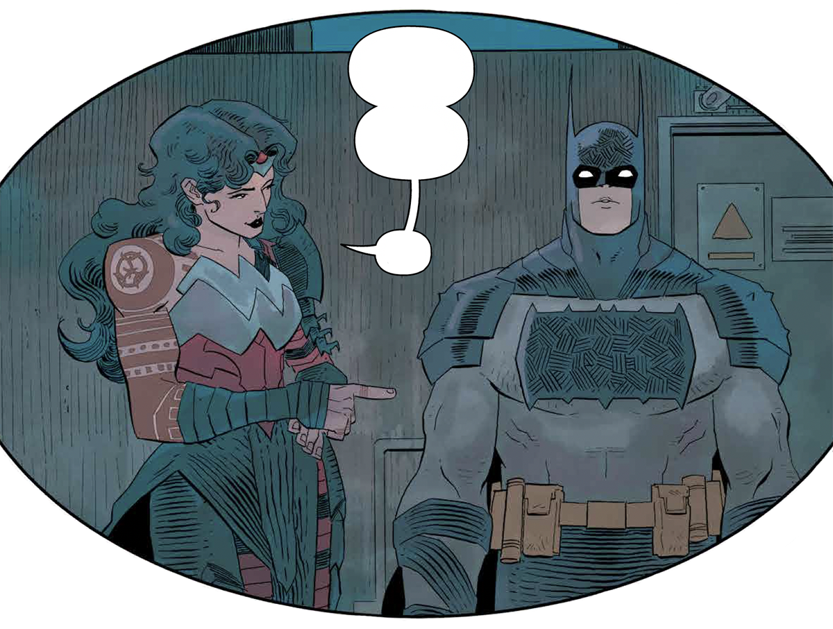 Another peek at ABSOLUTE DIANA and ABSOLUTE BRUCE meeting for the first time in the 12/24/25 issue of ABSOLUTE WONDER WOMAN #15. An historic issue — so I hope you guys have got yours ordered! All art and colors by Hayden Sherman and Jordie Bellaire. Lettering by Becca Carey: