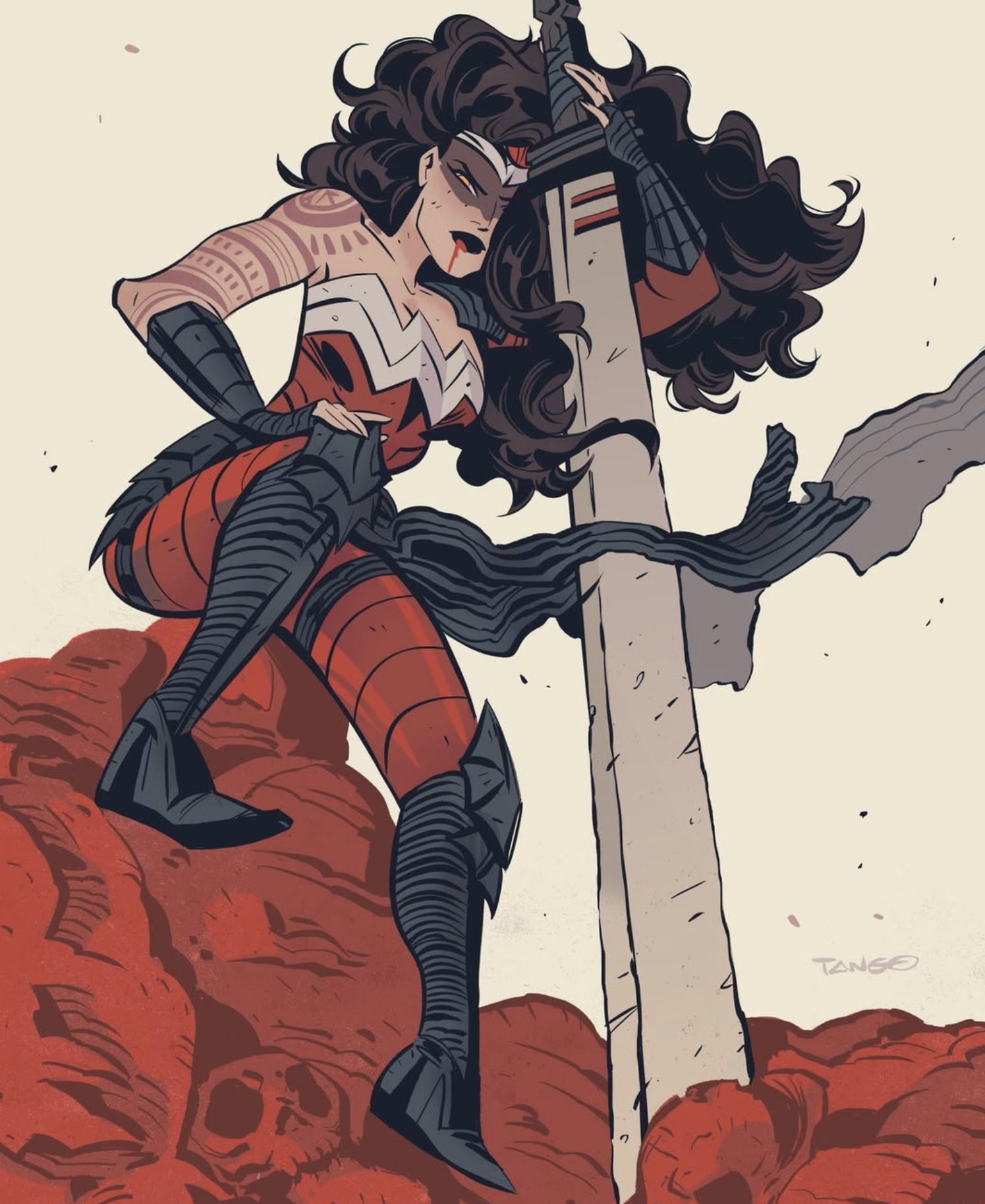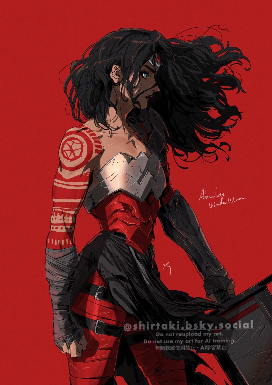 This one reminds me a bit of what an ABSOLUTE WONDER WOMAN meets BLUE EYE SAMURAI approach might be. This is by MatteoIlluminati: