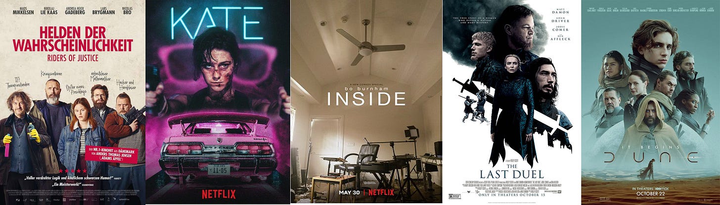 RIDERS OF JUSTICE (2021 — US release) This was an unexpected (if insanely violent) delight. I really loved it. It takes a pretty basic revenge movie AND a “build your team” concept and subverts it in terrific ways. You find yourself attaching to characters quickly, there are legitimately good jokes, and the revenge action is INTENSE. One of the true delights for me is when a piece of media (books, comics, movies, TV, music, whatever!) zags when you expect it to zig. And ROJ has that in spades. If you don’t mind intense violence, I definitely recommend it. 4.5/5